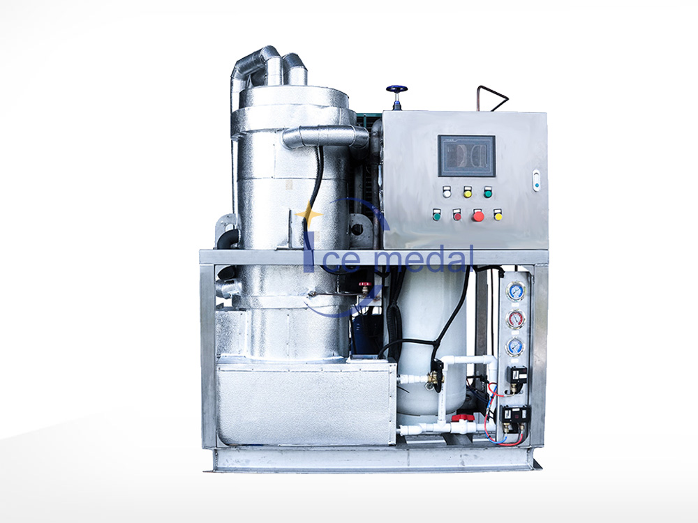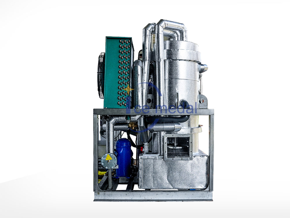 2、管冰機(jī)所有與制冰水接觸部分材質(zhì)均是食用級材料。 由多根不銹鋼管組成蒸發(fā)器制冷劑在管與管之間流動,水在管內(nèi)從上往下在分水器的作用下呈螺旋狀流動, 水在流動過程中形成冰。