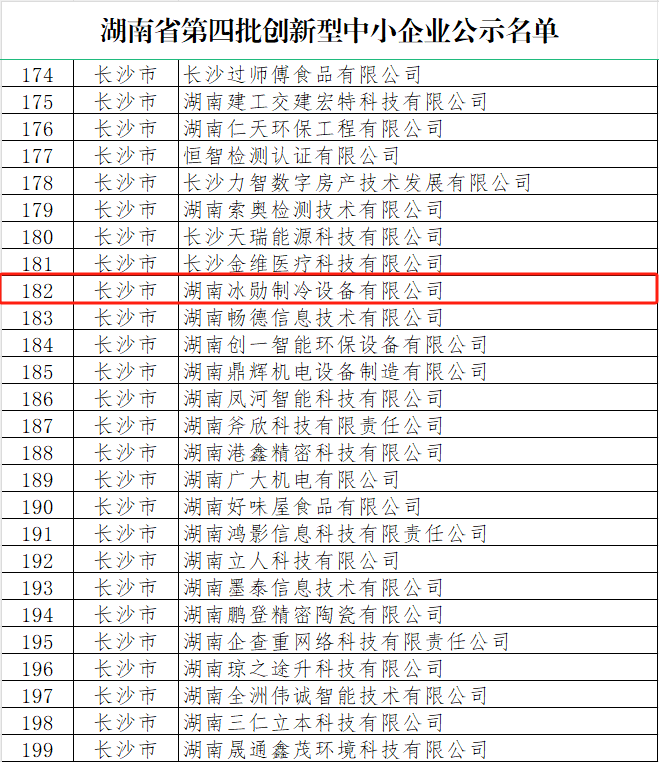 近日,湖南省工信廳公布了湖南省第四批創(chuàng)新型中小企業(yè)名單,湖南冰勛制冷設備有限公司榜上有名。