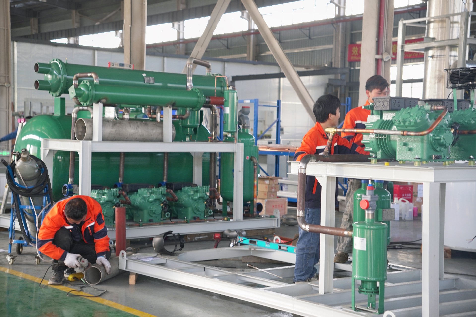 目前,公司生產(chǎn)的多臺設(shè)備已進(jìn)入組裝調(diào)試階段,近30位員工正駐守在車間一線,為產(chǎn)品的順利驗收保駕護(hù)航。無論是生產(chǎn)車間還是辦公室,湖南冰勛制冷的員工們團(tuán)結(jié)協(xié)作,互幫互助。充分詮釋了”齊心協(xié)力、攻堅克難”的精神,用自己的實際行動助推公司發(fā)展。